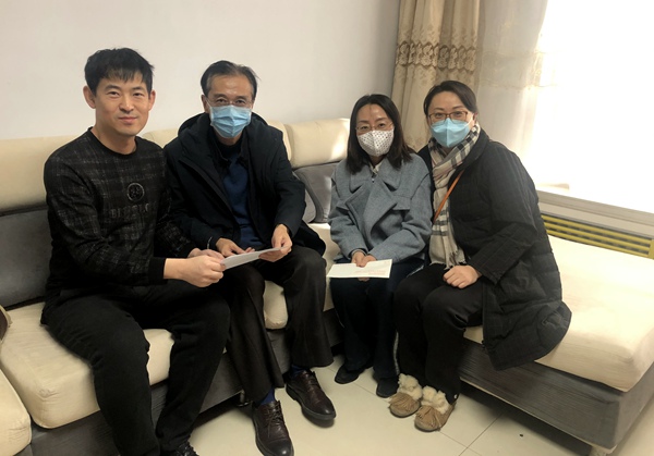 宋太一行向任慧敏的家人送去了慰问品和农工党河北省委会《致全省支援湖北防疫一线农工党党员的慰问信》,宋太仔细询问了家属的工作生活情况,对家属支持我们农工党党员医务工作者援鄂表示感谢。宋太说,这次抗击疫情的战役中,任慧敏主动请缨驰援武汉,这种精神境界让人感动,更为党员们树立了榜样,市委会主委张辉同志因参加市政府会议未能前来慰问,嘱咐我们一定要询问援鄂党员家人在工作生活中有什么困难和需要。宋太表示,我们的党员在前线战斗,市委会要尽力做好相关服务保障工作。