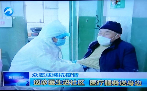 “老人家,您身体哪里不舒服。”2020年3月10日上午10点多,农工党党员、黄石有色医院医生操凯来到铜都社区88岁余少付老人家里进行了问诊。余少付婆婆患有冠心病、高血压等多种慢性病,由于年迈体弱,上医院十分不便。近期,铜盛卫生服务中心经过摸排,信息上报汇总后,经过提前对接预约,巡回医疗组医生操凯,当天特意上门为老人看病。