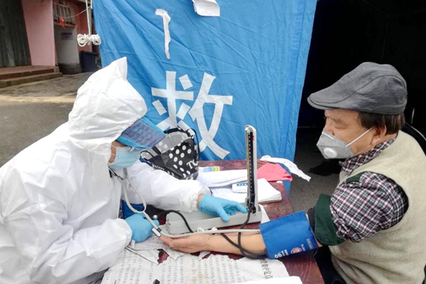 操凯医生到小区门口巡诊70岁周遵元头痛诊治过程