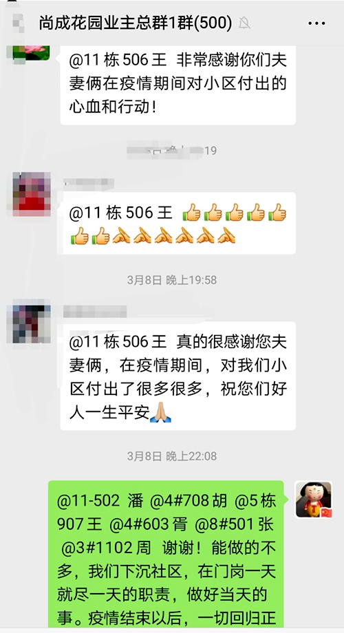 一桩桩、一件件的小事,赢得了居民、社区、物业人员的称赞。王娟说:“每个人做的事不同,岗位不同,却有相同的目标。每个人都在为防疫做着点点滴滴的努力,我们一定会打赢这场防疫战!”(汪雨琦)