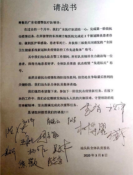 农工党党员、汕头市第二批援助湖北医疗队队长、汕头大学医学院第二附属医院心血管内科主任医师李智所率医疗队参与了东西湖方舱医院管理、医疗、护理工作。他表示,自2月9日率队出发奋战至今,“最大的感受当然是非常开心,因为我们方舱医院可以休舱,也就意味着疫情防控取得了阶段性的胜利。我们现在全队都有一个共同的信念,大家思想都很统一,就是无论如何,我们都会站好最后一班岗。休舱后,汕头医护人员主要以休息为主,等待下一个任务到来。”在原地休整待命的时候,整个医疗队又写了新的请战书,李智组织队员们整理个人工作总结,随时准备接受新的任务。