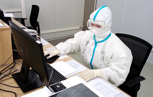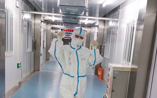 在南京市公共卫生医疗中心,她和队友们每20小时需要值一轮班,每个班4小时,穿着全套防护设施。为了节约装备,这期间她们滴水不进,全神贯注,不容一丝懈怠。虽然都是具有丰富临床经验的医生,但每天的压力是非同寻常的,患者的每个指标变化都牵动着她们的心。