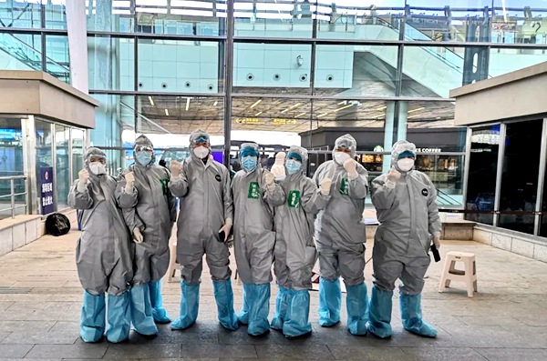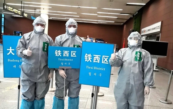 进入三月份,沈阳市疫情趋于稳定,但国外的形势仍然十分严峻,许多华人华侨和外籍人士纷纷回国。面对这个突发情况,沈阳市启动境外人员回国指定酒店隔离方案,临时组建防疫防控人员对桃仙机场的落地乘客进行分流引导安全转运隔离,把输入病例的疫情传播扼杀在摇篮里。