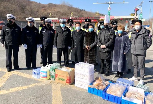 抗击疫情期间,曲静主委多次带领集团公司所属的丹东分公司曲静珠宝与麦田西点的员工到丹东市公安、丹东市中级人民法院、丹东市传染病医院、丹东市结核病防治所、宽甸县中心医院、丹东市公安局监所管理支队、市综合执法局、社保局、福利院、丹东市妇联振兴区各社区奋战在“抗疫”一线的卡站干警、医护工作者、联防联控工作人员,为他们送去了疫情期间紧缺的防护口罩、消毒液防护用具物品,还暖心地准备了矿泉水和麦田西点定制面包等生活物品。
