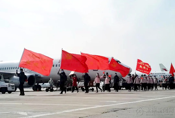 2020年3月28日下午,山西省支援湖北医疗队236名队员平安抵达太原武宿国际机场。机场举行了隆重的“过水门”仪式为英雄们接风洗尘,家乡人民热烈迎接着亲人荣归。