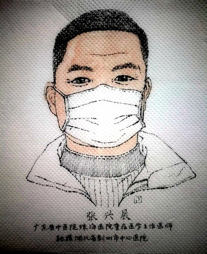 农工党党员、广东省中医院珠海医院重症医学主治医师张兴展在鄂期间奋战于荆州市中心医院重症中心抗疫一线,他在防护服外面写上了“珠海大白”几个字,希望能像大白一样守护身边的病人、家人、朋友。