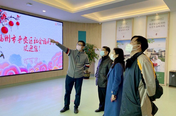 2020年4月7日,农工党福建省委会专职副主委杨琳,省委会常委、福建医科大学附属协和医院神经外科主任石松生一行赴农工党福州市科技支部主委卢健创办的福州市晋安区社会福利中心华煦养老院调研。