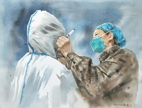 3月17日,省档案馆、省美协联合发出征集收藏抗疫作品的通知后,陈朝晖呈送该作品参评。经过省专家组评审,该作品从700余幅各类参评美术作品中脱颖而出,成为江西省博物馆永久收藏的87幅作品之一。(黄一魏)
