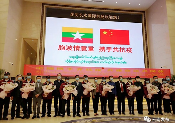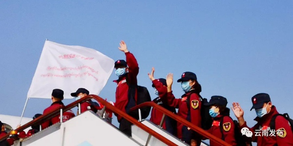 出征仪式后,抗疫医疗专家组乘坐东航包机从昆明出发前往缅甸仰光。(农工党云南省委会)