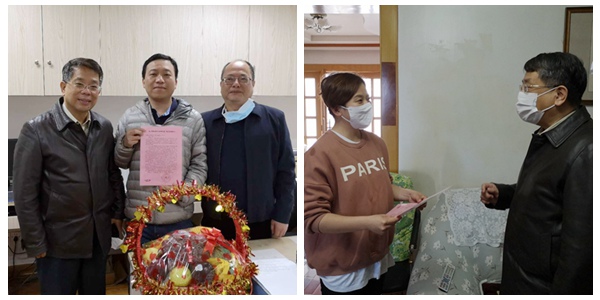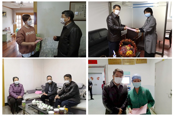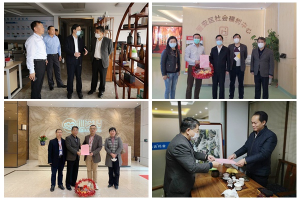 刘献祥、杨琳慰问杨效其董事长(左上图左一)、卢健董事长(左下图右二)、卢健董事长(右上图左二)郑振财(右下图)