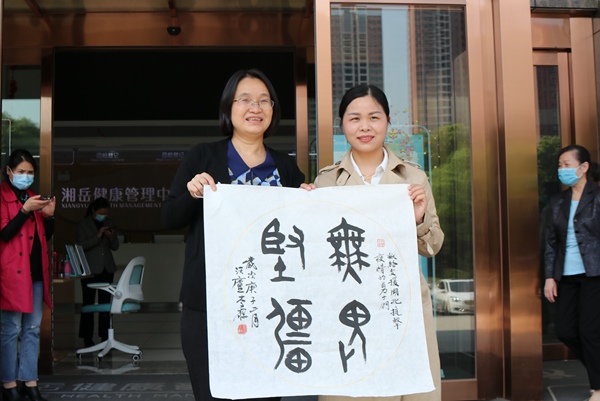 农工党岳阳市委会调研员、专职副主委周波,农工党湖南省委会专职副主委蒋秋桃分别讲话。蒋秋桃首先感谢了省血防所党委及行政班子对农工党党员的关心关爱,她指出此行是带着农工党中央及湖南省委会各级领导、党员同志对刘琳琳同志及家人的关心关爱而来,亦是兑现承诺而来。蒋秋桃表示,在此次疫情中全省有1500名农工党党员奋战在疫情一线,全省党员共计捐款捐物1700万元。蒋秋桃指出,疫情取得阶段性胜利彰显了我国多党合作和政治协商制度的优越性,要大力弘扬抗疫精神,讲好抗疫故事和扶贫故事,立足理论、历史、事实等角度,多方位宣传好新时代多党合作故事。