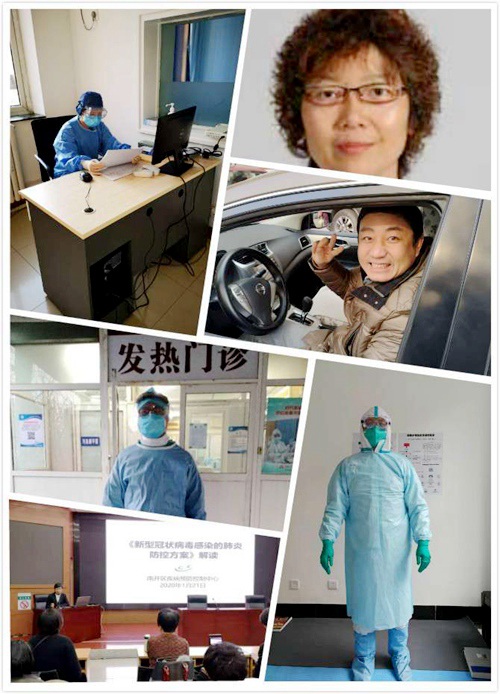 南开区疾病预防控制中心副主任、主任医师王现玲,作为抗击过2003年非典、2009年甲型H1N1流感、支援过新疆脊髓灰质炎疫情防控的“疾控人”,她不惧感染危险,入医院、进社区,对确诊患者开展详细的流行病学调查。认真研究防控技术方案、诊疗方案,指导辖区医疗卫生机构开展病例判定,严格落实每一项防控措施。党员金文敏、夏伟、谢莉丽、李雪梅、赵研分别被抽调到第一中心医院、南开区中医医院、第二人民医院发热门诊对就诊患者进行筛查、诊断。白昼黑夜对发热门诊里的医护人员来讲没有任何的概念,无论疫情多么严峻,他们始终坚守岗位,耐心细致的对每一例发热患者进行鉴别诊断。他们隔着口罩、眼罩依然对患者用力微笑;用乐观的态度消除隔离患者恐慌的情绪;不吃不喝只为了减少上厕所的频次......