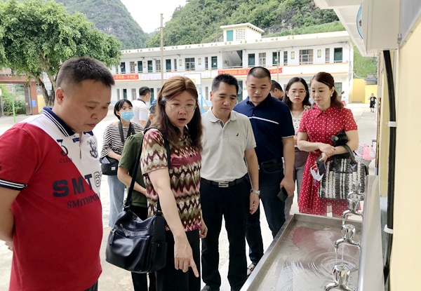 活动当天,覃建宁一行首先在荣朋村委会议室,与都结乡政府、荣朋村委干部、扶贫工作队员等座谈,介绍农工党环境与健康宣传周情况,听取荣朋村扶贫攻坚工作情况及饮用水相关情况,并就加强群众饮水健康安全进行宣教。
