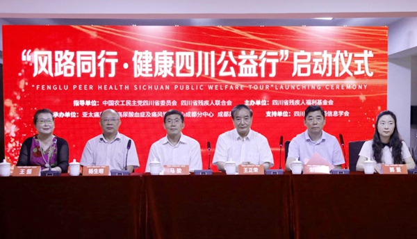 2020年6月19日上午,在农工党四川省委会、四川省残疾人联合会指导下,由四川省残疾人福利基金会主办的“风路同行·健康四川公益行”启动仪式在成都风湿医院举行。全国政协常委、四川省政协副主席、农工党四川省委会主委王正荣,四川省卫生健康委员会党组成员、副主任宋世贵,四川省残疾人联合会党组成员、副理事长马骏应邀出席并致辞。