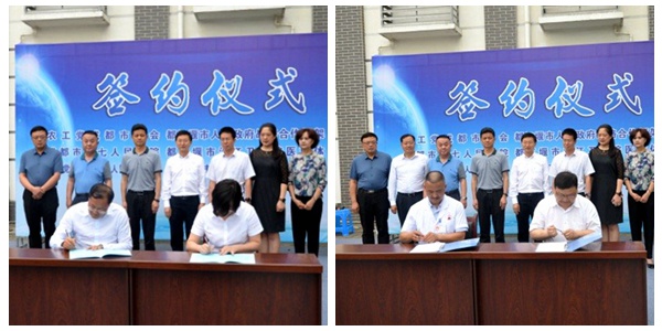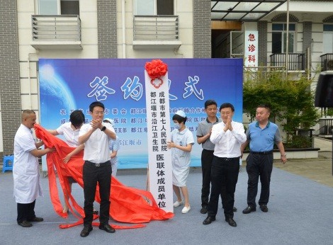 农工党四川省委会副主委、成都市政协副主席、成都市委会主委甘华田,农工党成都市委会副主委胡伟峰、秘书长曾琪,成都市卫健委副巡视员张峰,一级调研员兼中医处处长赵春晓,成都市第七人民医院党委书记敬红平,副院长周瀚,都江堰市政协主席丁小平,中共都江堰市委常委、统战部部长李可,都江堰市副市长陈丽娜,都江堰市政协副主席杨永奎参与见证了签约和揭牌仪式。