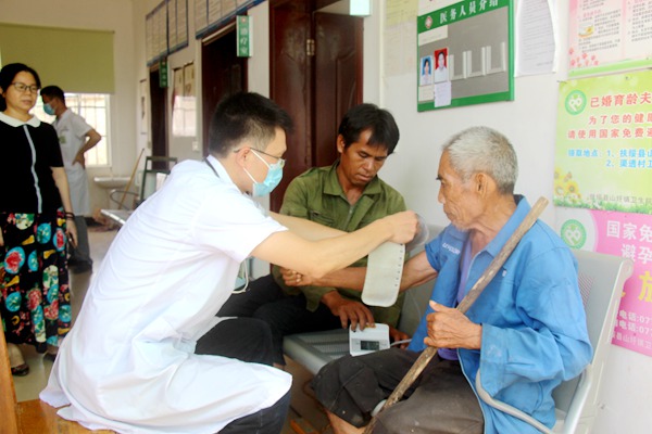 当天上午,慰问组和医疗专家们一行来到扶绥县山圩镇和柳桥镇2家极度贫困户和5家边缘贫困户家里,详细了解困难群众的生产生活、住房医保及子女教育等情况。农海波和困难群众及家属们亲切交谈,鼓励大家坚定信心,坚持治疗战胜疾病、辛勤劳动脱贫致富。农海波和农工党党员、桂和堂中药集团董事长刘民等分别给7户贫困户家庭送上米面油和装有板蓝根、藿香正气水、大红枣等常用保健品的“爱心礼包”,给高血压患者家庭送上电子血压计和药品,给贫困户提供住房墙壁粉刷服务等。慰问组一行还与扶绥县山圩镇和柳桥镇政府有关工作人员就后续帮扶贫困户问题进行商谈。