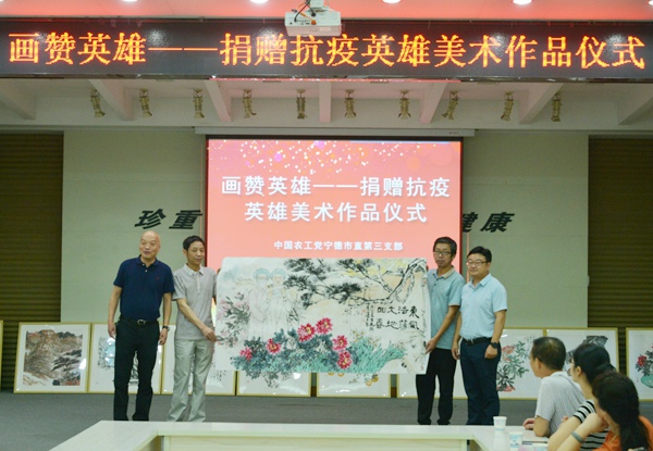 为了学习和致敬援鄂抗疫英雄,弘扬时代主旋律和社会正能量,农工党宁德市委会组织党员书画家罗朝建、陈瑞麟、庄美丽、高传江等精心创作书画美术作品20件,捐赠抗疫英雄凯旋归来,向最美逆行者表达崇高的敬意。捐赠活动也拉开了农工党宁德市委会庆祝农工党成立九十周年系列活动的序幕,得到了福鼎市总医院医务人员和当地群众的欢迎及肯定。(吴仲跃)