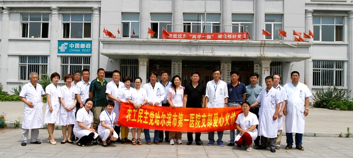 2016年7月8日,酷暑正炙。农工党哈尔滨市第一医院支部响应陆昊省长“健康龙江”的号召,在农工党哈尔滨市委会副主委魏林、农工党哈尔滨市一院主委赵庆东、副主委何英的组织下,医院心内、呼吸内、消化内、神经内、中医、儿科、口腔、骨外、检验、营养、普外、法鉴、干部病房、宣传企划部等多科系的18位党员,冒着暑热到道外民主镇进行义诊咨询及进行健康教育宣传。
