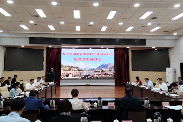 丽江市委副书记、市长郑艺代表市委、市政府对农工党湖南省委会连续四年对丽江脱贫攻坚的倾力支持和监督指导表示感谢,并表示对农工党湖南省委会提出的意见建议,丽江市全盘接受,将迅速响应、认真研究,对标对表、整改落实,坚决用好民主监督成果,借助农工党智力密集、人才荟萃、联系广泛的优势,进一步把脱贫攻坚与实施乡村振兴战略紧密结合起来,加快补齐教育、卫生等短板,持续推进产业扶贫、就业扶贫、消费扶贫、教育扶贫、健康扶贫,切实把民主监督的丰硕成果转化为全市脱贫攻坚的实际成效。郑艺还希望农工党湖南省委会对丽江的生态移民工作给予更多支持和帮助。