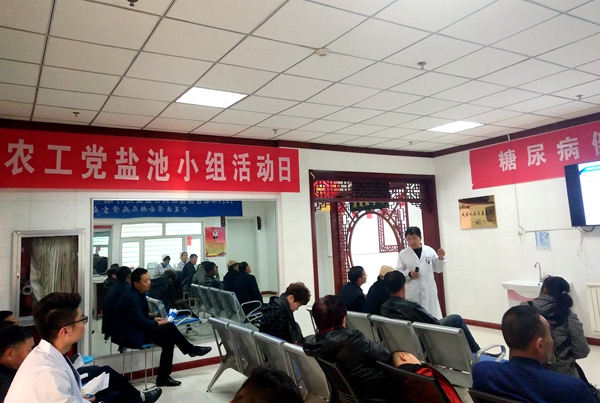 2019年11月5日,农工党吴忠市委会盐池小组组织党员在盐池县人民医院门诊四楼开展糖尿病健康知识讲座暨义诊活动。
