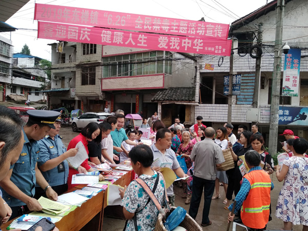 2019年6月21日,农工党安居总支党员积极参加由安居区组织部、区政协、区禁毒办、区交运局、东禅镇人民政府、东禅镇卫生院联合举办的“6.26”国际禁毒日宣传活动。
