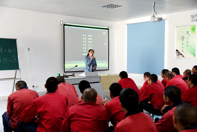 徐子馨老师将自己学习传统文化的体会及文化精髓,向近200位戒毒人员做了深入浅出的阐述。讲座在一个感人的视频短片中开始,从做人要讲孝道谈起,勉励戒毒人员感恩父母、感恩社会、感恩祖国。最后,讲座在徐子馨老师一曲《儿行千里母担忧》的真情演唱中结束。在场的许多戒毒人员留下了泪水,其中有悔恨也有感恩。他们纷纷表示要用实际行动回报父母、回报社会。讲座还组织学习了习总书记在两会上的重要视频讲话。