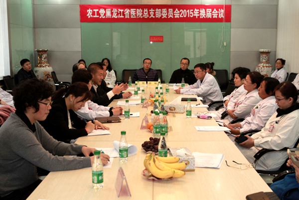 2015年11月9日,农工党黑龙江省医院总支部委员会换届会议在省医院香坊总院行政楼会议室举行。中共省医院党委书记王亦冬应邀出席会议并致辞,黑龙江省政协副秘书长、农工党黑龙江省委会驻会副主委刘长青出席会议并讲话。会议由总支副主委刘延东主持。