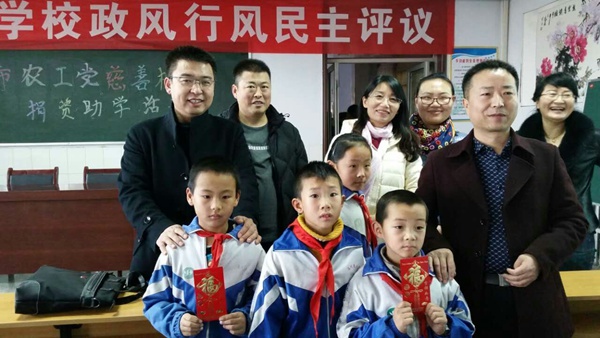 2015年11月26日,农工党巴彦淖尔市总支部委员会开展“国际科学与和平周”捐资助学活动,组织党员前往临河区逸夫学校开展“用爱的力量托起心中的梦想”为主题的爱心帮扶助学活动,为该校11名品学兼优的贫困学生每人捐助500元现金,传递一份爱心,体现一份责任。
