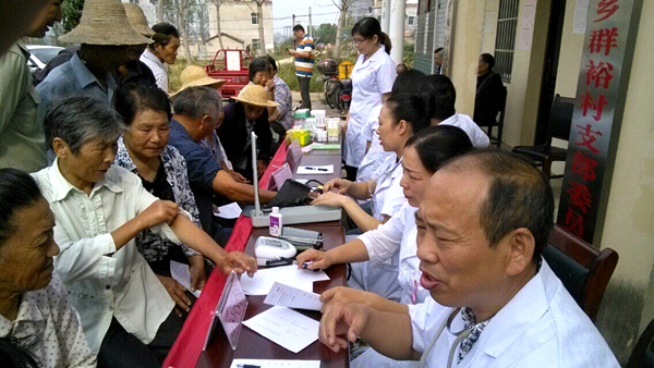 义诊现场,咨询的村民围在就诊台前,人头攒动,热闹非凡。平日在大医院看病很难,如今却能够在自家门口得到免费的体检和专家的诊断治疗,让他们感到惊喜不已。专家们忙而不乱,心里只有一个念头,那就是多为村民送去一份爱心,送去一份温情。他们热情接待每一位就诊村民,认真把脉问诊、测血压、开处方、指导用药,耐心细致地解答群众的问题。对常见病、慢性病进行初步筛查、诊断,并根据每位群众的身体状况提出了合理化治疗建议和健康指导。对需要进一步确诊的村民,医疗队员再三叮嘱他们一定要到医院进行更详细、更全面的检查,以免延误病情治疗。