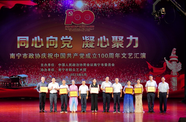 “灯火里的中国,青春婀娜,灯火里的中国,胸怀辽阔,灯火灿烂的中国梦,灯火荡漾着心中的歌……”2021年6月20日,由农工党南宁市委会选送的表演唱节目《灯火里的中国》,在南宁市政协举办的“同心向党 凝心聚力”庆祝中国共产党成立100周年文艺汇演上荣获“优秀表演奖”。