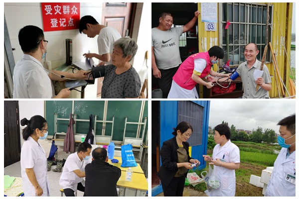 王长海作为博望镇的联络员,统筹协调安置点设置,负责上下联络和迟村水库24小时巡察包保工作;党员戴荣生也加入了水库巡堤包保工作;医疗应急队员王铃、谷峰、唐以花、朱隆花每日赴防汛现场派发防暑、抗过敏、抗菌消炎药等急需药品,进行巡诊和健康指导,并为守堤人员开展健康监测,为居民安置点群众指导合理用药、进行心理疏导等。
