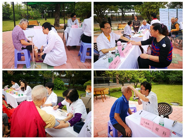 活动当天,在农工党番禺区委会副主委刘付强、欧阳玉林、卢洁婷的带领下,万志成、麦浪、于建新、许桂润、陈晓芸、曹华德、肖化斌、刘焕玲、何金花、谢杏苗等区内外各大医院21名医疗专家来到荔园养老中心,为老人们和周边村民开展免费的健康咨询和体检活动。义诊开设免费的内科、中医科、外科、妇科、眼科、康复科等专家咨询,以及测血压、血糖、身高体重和B超、心电图检查等,现场为群众进行诊疗,并赠送治疗药品、健康教育手册等。