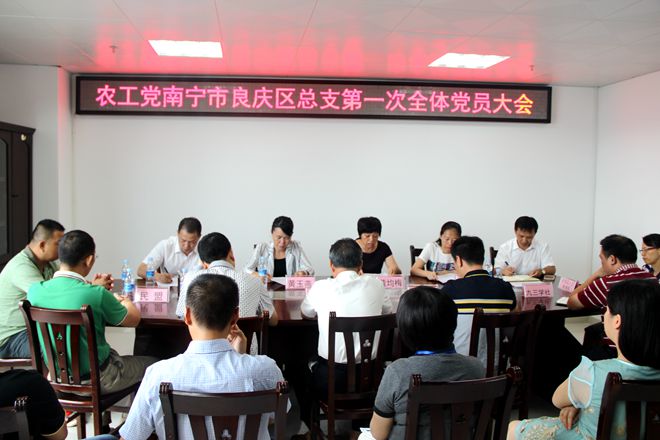 2016年8月3日,农工党南宁市良庆区总支第一次全体党员大会在良庆区行政办公中心召开。农工党南宁市委主委黄玉燕、副主委金轮出席会议,中共良庆区委常委、统战部部长黄均梅及良庆区各民主党派基层组织负责人应邀莅会。