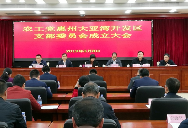 2019年3月8日上午,农工党惠州市委会举行惠州大亚湾开发区支部委员会成立大会,市委会主委陈高燕,中共惠州市委统战部副部长彭华君,中共惠州大亚湾开发区区委常委、两委办主任严文生出席会议。会议由惠州市委会副主委张文斌主持。