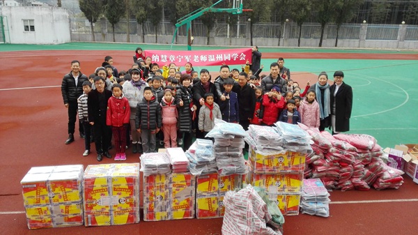 2015年2月4日,正逢立春节气,天气却格外寒冷。在农工党永嘉县委会的牵头下,纳慧章宁军老师温州同学会成员在会长张建国先生和会员柳爱英女士的带领下,满载着羽绒服和相关物资,来到了永嘉县黄南小学,看望慰问这些山区的老师和孩子们,给他们带去浓浓的暖意。