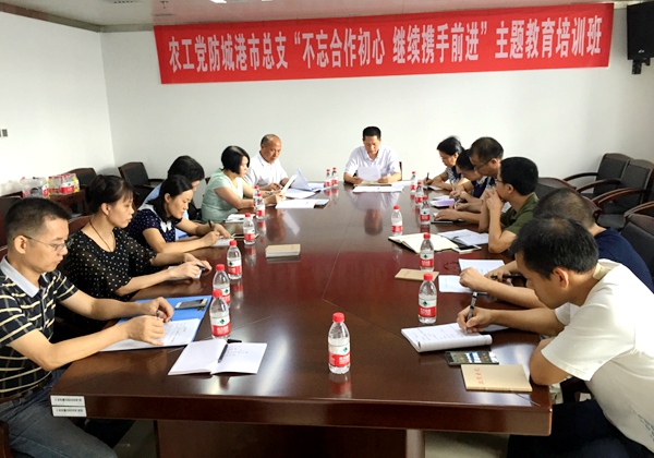 2017年7月18日,农工党防城港市总支举办“不忘合作初心,继续携手前进”主题教育培训班。总支主委蒋为玉给党员们授课。