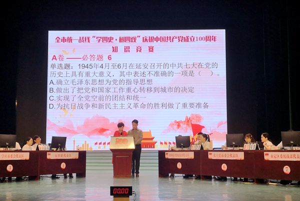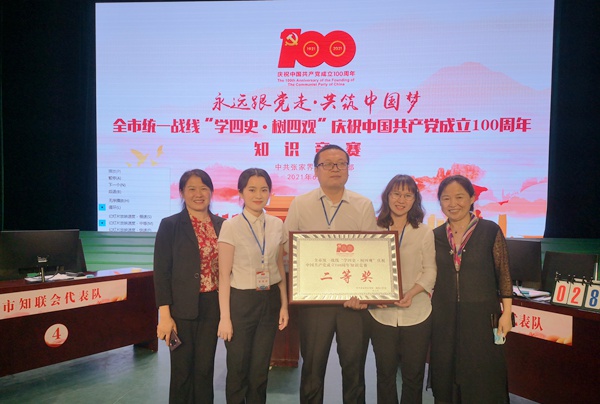 2021年6月22日,中共张家界市委统战部举办全市统一战线“学四史·树四观”庆祝中国共产党成立100周年知识竞赛活动,中共市委常委、市委统战部部长田华玉出席并讲话。农工党张家界市委会选派3名党员组队参赛荣获“二等奖”。