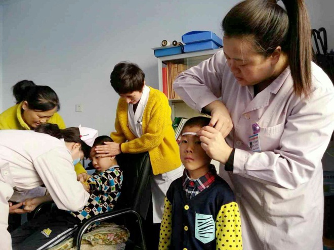 农工党通化市人民医院支部自愿承担我市福利院孤残儿童的健康体检工作,每年儿童节前夕,她们都挤出时间去福利院免费为儿童进行常规体检,并为孩子们建立健康档案。(史秋红)