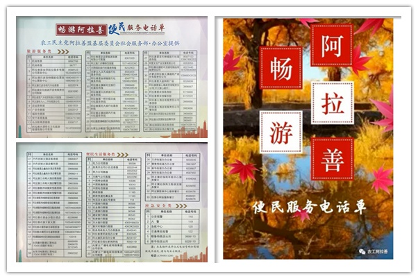 2018年中秋、国庆前夕,农工党阿拉善盟基层委员会为拓宽社会服务渠道,服务民生、助力全盟旅游业发展,精心搜集整理汇编了一份便民号码薄,并通过农工党阿拉善基层委员会微信公众平台、阿拉善日报、阿拉善新报等媒体面向社会发布。截至目前,点击量已近1.5万次。