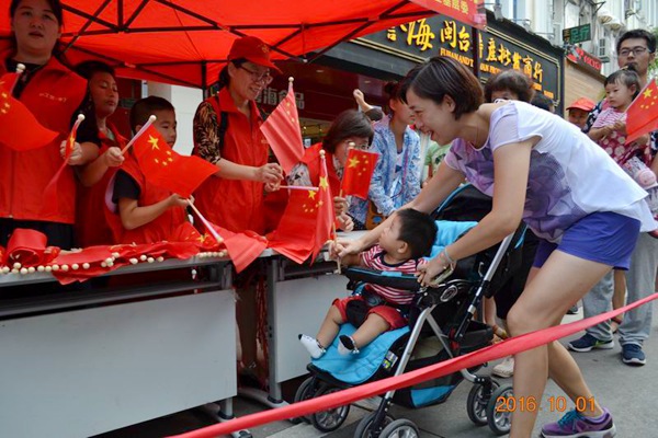 2016101日上午,农工党厦门市思明区基层委、中共厦门市思明区中华街道党工委、中华街道办在中山路联合举办祝福祖国 不忘初心 让国旗永远飘扬国旗免费发放活动。这是由农工党厦门市经济支部倡议发起,农工党思明区基层委与中华街道结对共建的一项活动,迄今已连续举办了十一年。