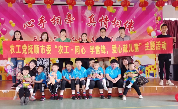 2018年5月26日,农工党抚顺市东洲支部支部主委石雅娟带领10名支部党员来到支部活动联系单位市儿童福利院开展“农工•同心 学雷锋,爱心献儿童”主题活动,与福利院儿童欢度节日。