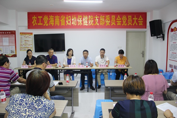 2019年7月16日下午,农工党海南省妇幼保健院支部召开党员大会进行届中调整领导班子成员。农工党海南省委会专职副主委毕华,中共海南省妇幼保健院党委负责人樊利春出席会议并讲话。省委会副主委、省妇幼保健院支部主委吴树行主持会议。