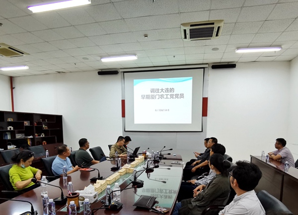 随后,农工党大连市委会一行赴集美鳌园拜谒了陈嘉庚墓,并参观了陈嘉庚纪念馆,了解被誉为“华侨旗帜、民族光辉”的陈嘉庚先生的生平事迹、历史功绩,以及陈村牧、陈维风等农工党先辈为集美学村建设发展所作出的重要贡献。农工党大连市委会、厦门市委会还开展了党史工作交流,陈育斌对两地农工党组织历史渊源作了简要介绍。农工党厦门市委会组织处处长王复光围绕农工党厦门市委会历史沿革、福建航海专科学校并校情况、调往大连的早期厦门农工党党员先进事迹等作党史报告。李志希望两地加强党史工作交流,开展党史研究协作。陈育斌还向李志移交了农工党厦门市委会存档的调往大连的早期党员入党资料(复制件)。与会人员表示,通过考察交流,增强了组织荣誉感和责任感,接下来要进一步加强党史工作,传承农工党前辈先贤的优良传统,不断巩固多党合作的思想共识。