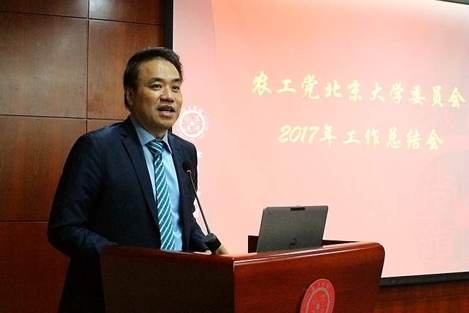 2017年12月6日下午,农工党北京大学委员会2017年工作总结会在北京大学第一医院内科楼二层会议室召开。此次总结会由农工党北大医院支部承办,特邀农工党北京市委会秘书长江欣、组织处处长王小燕,中共北大医学部党委副书记徐善东、统战部部长王军为,中共北大医院党委书记潘义生、党委副书记孙晓伟出席。农工党北京大学委员会所属各支部近70名党员参加了会议,农工党北京大学委员会副主委、北大医院支部主委熊辉主持了会议。
