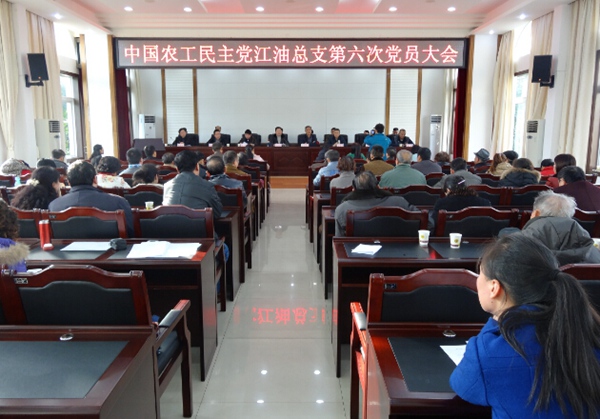 2014年12月11日下午,农工党江油总支顺利召开第六次党员大会进行换届选举并更名江油市基层委员会。绵阳市政协副主席、农工党绵阳市委会主委沈其霖出席并发言。中共绵阳市委统战部副部长杨守贵,江油市政协主席范来山,江油市政协副主席、中共江油市委统战部部长汤国平等领导出席了大会。