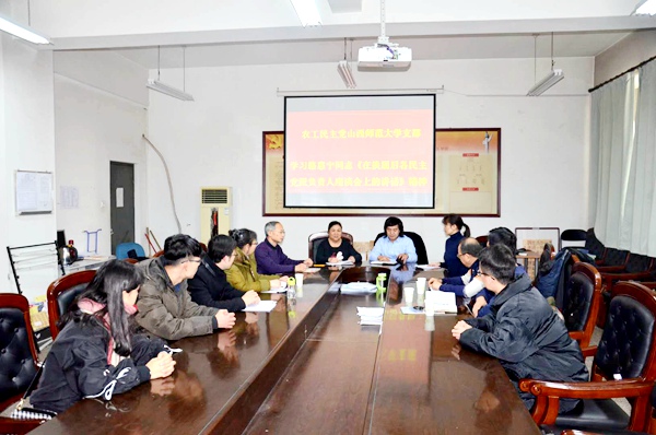 2017年12月25日上午,农工党山西师范大学支部组织全体党员学习骆惠宁书记《在换届后各民主党派负责人座谈会上的讲话》,党员们积极参与了党支部组织的学习并讨论发言。