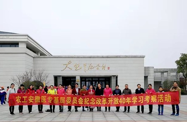 2018年11月11日,农工党安徽医专基层委员会的党员们在农工党安徽省委会常委、安徽医专基层委员会主委汪洪杰的带领下前往农村改革第一村——凤阳县小岗村,参覌了“大包干纪念馆”及“沈浩同志先进事迹陈列馆”,以此纪念中国改革开放40周年。
