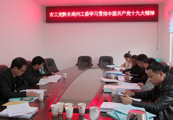 2017年11月7日下午,农工党黔东南州工委召开委员扩大会议,组织工委委员和各基层支部委员贯彻学习中国共产党第十九次全国代表大会精神。农工党黔东南州工委副主委王绍国、王亚平分别传达学习了孙志刚书记《在贵州省传达学习贯彻党的十九大精神干部大会上的讲话》、《贵州省统一战线学习十九大精神会议精神》和《党的十九大精神传达提纲》。