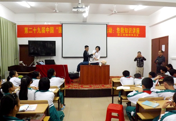 本次急救知识讲座是农工党儋州市总支开展主题为“携手建设安全稳定、发展繁荣的共同家园”,分主题为“传播卫生知识,促进全民健康”“普及科学知识提高公众素质”的第二十九届中国“国际科学与和平周”宣传的活动之一。农工党儋州市总支负责人说,“通过讲座让师生了解了紧急救护知识,初步掌握了基本急救技能。今后我们还将举办类似活动,扩大急救知识讲座受益面。”。