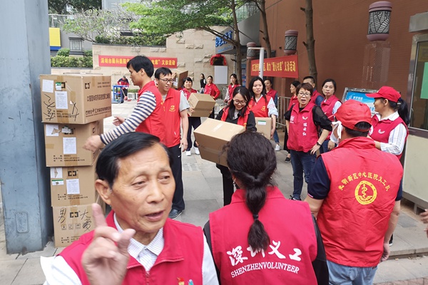 在举行“爱心衣库”活动揭牌仪式前,支部组织国科大深圳医院10位农工党党员专家和深圳市眼科医院7名专家上午9点半参加了爱心义诊、为小区90多名居民诊治,咨询,健康教育等医疗服务。